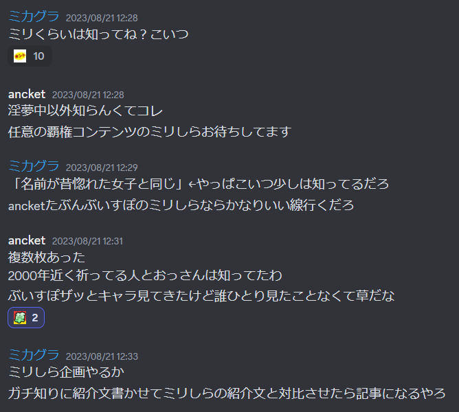 いたずらでケラケラ笑ってる間にガチトロールをかまして本当に申し訳なさそうな声を出す瞬間を見るのが最も健康に良いアクティビティとされています。でも遊びたくて声かけるときに「気分じゃないときに断りづらくないように」と、必ず見れるYouTubeコメントではなくDiscordのDMで連絡するという、しっかり気遣いが出来る面もある。そのせいで遊べなかったところも不憫かわいい。
